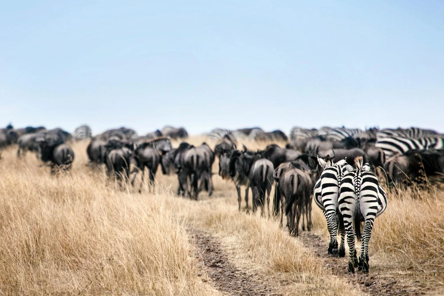 Travel through the misty Ngorongoro Highlands and then descend into the Serengeti’s vast plains. Stop at Olduvai Gorge to see where our ancestors walked and visit a Masai village to learn about their warrior traditions. By the afternoon, watch for the Great Migration, a massive movement of wildebeest and zebra.